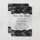 Tarjeta de Save-the-Date con un diseño elegante en negro y blanco, encaje y satén. Un diseño muy clásico y sofisticado para la pareja que se casa. Todo impresión fotográfica.