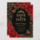 Reserva La Fecha Black Red Gold Quinceanera Floral