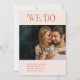 Bodas modernas salven la tarjeta de fecha con un diseño mínimo con "We Do" en tipografía audaz encima de tu foto de paisaje. La parte trasera tiene una foto retrato junto con detalles adicionales. Todos los elementos de diseño están en tonos tierra desérticos y pueden cambiarse en la herramienta de edición de diseño. Esta simple pero elegante tarjeta de fecha ahorrada es genial para un boda informal o formal.