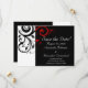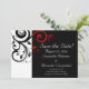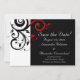 Conjunto de papelería y boda contemporánea moderna audaz y llamativa en negro con acentos rojos, con delicado fondo de hoja de voluta en espiral. Personalice en línea con los detalles de su boda. Este artículo está disponible como una colección completa de boda que incluye invitaciones, tarjetas de RSVP, Save the Dates, imanes, pegatinas, tarjetas de lugar de mesa, planificación de boda y carpetas de álbum de fotos y más.