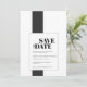 Elegante y moderno, esta tarjeta Minimal Black and White Save the Date presenta un diseño monocromático elegante, perfecto para parejas que aprecian la simplicidad y la sofisticación. La atemporal paleta en blanco y negro garantiza que se complementa con cualquier tema boda mientras se mantiene el foco en su día especial. Con líneas depuradas y tipografía mínima, este diseño exuda clase y refinamiento, convirtiéndolo en una elección ideal para bodas contemporáneos. Personalice sus datos para que sea exclusivamente suyo.