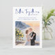 Blue Amalfi Coast Lemon Tree Chic Wedding Couple Save the Date Cards with Back QR Code.