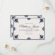 This Blue Floral Otomi Simple Fiesta Spanish Wedding Save the Date design features a simple and elegant border, with dark blue floral and bird elements delicately placed in each corner. The central area is left blank, framed by a thin blue line, which provides a clean and minimalist backdrop for the text. The combination of birds and flowers, along with the restrained use of color, gives the design a sophisticated yet traditional look, inspired by Mexican folk motifs.