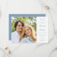 Guarde la tarjeta de fecha para la colección de coronas florales azules. El diseño evoca una sensación de primavera y un nuevo comienzo con sus tonos pastel. Flores de color azul, viñas y hojas enmarcan el texto sobre un fondo blanco. Por el contrario, la parte trasera de la tarjeta es un azul profundo y polvoriento. Agregue su propia foto y personalizar la información para su evento. Perfecto para un jardín o un boda de primavera.