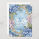 An elegant coastal wedding design featuring soft blue hydrangeas, woven nautical rope details, delicate seashell accents, and an airy ocean-toned watercolor background. The composition blends botanical romance with subtle seaside elements, creating a refined coastal look that feels timeless rather than themed.