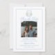 Blue Hydrangea Crest Monogram, save the date is vintage-inspired soft blue and white design that's perfect for a garden or coastal-themed wedding. The save the dates features an elegant light blue color typography design style mix of script and bold type. Solid light blue backing with a matching envelope that has blue and white hydrangea details to tie it all together. You can easily customize this design with your details. Happy planning!
