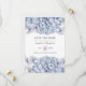 La boda de las hortensias azules salva la tarjeta de fecha. Se destacan dahlias, crisantemo y rosas.