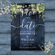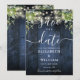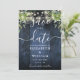 Esta elegante carta rústica de madera de granero azul con boda de boho verde puede ser personalizada con su información en la tipografía de moda. Diseñado por Thisisnotme©