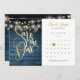 Reserva La Fecha Blue Rustic Wood String Lights Calendar Gold Heart