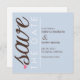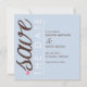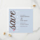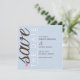 Este adorable anuncio de Save The Date incluye la frase "guardar la fecha" en blanco y marrón a la izquierda de la invitación, y su personalización a la derecha en marrón.