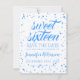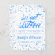 Elegante y moderno diseño "Sweet 16 ( Dieciséis ) Birthday Party" con el motivo de los puntos de confeti azul y blanco Purpurina Sparkle, y texto de nombre y detalles personalizados. Fácil de usar y fácil de personalizar. ¡No te quedes sin el tuyo!
