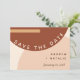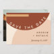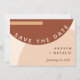 Una invitación moderna y elegante para guardar la fecha de la boda que da un ambiente boho rústico de los 70 con su patrón de círculos y rectángulos abstractos en tonos terrosos monocromáticos de terracota, naranja quemada y beige. Personalice los detalles de la boda y la foto.