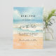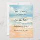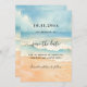 Una playa de arena de color agua, olas del océano y cielo azul como telón de fondo. Personalice y agregue una fecha y sus nombres. El texto: Save the Date se escribe con un gran guión de estilo escrito a mano.