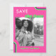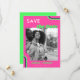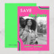 Anuncie su gran día con estilo con esta boda de arco iris retro rosa y verde ahorrando la tarjeta de fecha. Con un fondo rosa intenso, un texto verde grueso y detalles juguetones de la esquina del arcoiris, este diseño le aporta un divertido ambiente vintage a su celebración. Perfecto para las parejas que planean un boda colorido, moderno o inspirado en los años 70. Disponible como tarjeta impresa o descarga digital, esto ahorra perfectamente los pares de fechas con temas modernos, eclécticos o retro bodas.