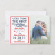 Estas tarjetas minimalista-modernas de boda ahorran la fecha tienen tipografía audaz en azul marino y rojo sobre un fondo blanco. El texto dice, "Estamos atando el nudo" con un motivo de cuerda náutica y un pequeño motivo de coral en la parte inferior. Utilice las plantillas fáciles para agregar sus nombres y la fecha de boda, junto con la foto de su personalizado. Personalizar / personalizar más para realizar cambios más detallados. Todo el texto y los elementos se pueden redimensionar y reorganizar. El "color de fondo" blanco en la parte delantera y el "color de fondo" azul marino en la parte posterior también se pueden cambiar a cualquier sombra.