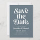 Retro y elegante guardar la tarjeta de fecha con el tipo de letra boho que dice "guardar la fecha" en color azul. Puede añadir una foto en la parte posterior.