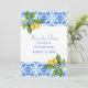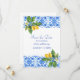 Guardar fecha de boda azulejos azules mediterráneos y limones.