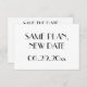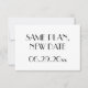 Tarjetas planas de boda blanca estilo Art Deco minimalistas para guardar la fecha con texto modificable Misma Fecha Nueva Fecha