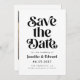 Retro y elegante guardar la tarjeta de fecha con el tipo de letra boho que dice "guardar la fecha" en blanco sobre un fondo blanco. Puede añadir una foto en la parte posterior.
