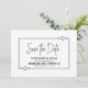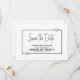 Hágale saber a tus amigos y seres queridos de tu futura fecha de boda para asegurar que todos puedan asistir y compartir la alegría de tu día especial con esta tarjeta blanca con el boda con marcos negros Save-the-Date.