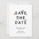 Esta tarjeta Save the Date presenta un divertido diseño en blanco y negro con iconos de temática boda integrados en la letra. Destaca los nombres de la pareja y su fecha de boda, en un diseño moderno y limpio. Sencillo y elegante con un toque lúdico.