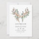 Marrón polvoriento seda rústica bolas de algodón y hojas de eucalipto boda guardar la fecha con plumas boho y cuernos. Ideal para cualquier tema o boda de jardín.
