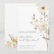 Elegante tarjeta de aviso de boda con flores silvestres pintadas con flores marfil y marrón quemado pintadas para cualquier temporada, complementada por un hermoso contraste de tipo de letra script moderna y un tipo de letra serif clásico. Elegancia boho moderna. Simples flores silvestres en la parte posterior.