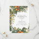 Tarjeta de aviso de boda floral y de follaje acuarela de naranja cítrico. Hermosas acuarelas florales impresas a mano y texto de letra moderna.