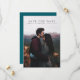 Crea una primera impresión impresionante con tus tarjetas de Save the Date de boda con una foto completa en la parte frontal y un reverso de un rico turquesa profundo. Este diseño muestra hermosamente tu foto favorita, capturando la esencia de tu historia de amor de una manera vibrante y llamativa. La parte frontal de la tarjeta ofrece una imagen a sangre, permitiendo que tu momento especial brille, mientras que la parte posterior presenta un tono turquesa profundo y elegante, añadiendo un toque de color y sofisticación.