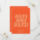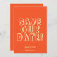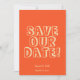 Esta moderna y retro funky Boda minimalista Guardar la plantilla de fecha es genial para usted. Si busca una boda bonito, elegante y fácil de personalizar, guarde la plantilla de fecha. Una plantilla sencilla y muy elegante. Que cuenta con un fondo de naranja brillante vintage. Con disposición de texto de melocotón amarillo beige y caligrafía escrita a mano. Agarra esta elegante boda, ahorra la fecha y haz que tus invitaciones estén realmente comprometidas.