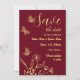 Una boda única y sencilla, salvo la tarjeta de fecha con flores y mariposas doradas románticas y elegantes sobre el fondo borgoñoso PARA MÁS PRODUCTOS COINCIDENTES haga clic en la colección de arriba o contáctame.