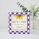 Anuncie su día especial con este rústico salve la tarjeta de cita, perfecta para una boda de otoño con gingham púrpura. Con un encantador diseño de picnic púrpura a cuadros, girasoles amarillos audaces y un fondo vintage, esto ahorra el diseño de la fecha para bodas de moda rústicos, celebraciones por el campo y lugares de establos o patio trasero. Los detalles de la invitación de su boda están diseñados en sans negrita y serif, con el patrón de gingham llevado en la parte posterior. Una gran elección para los bodas con temática de otoño y para las reuniones más acogedoras. Ver más boda guardar las invitaciones de fecha en VG Invitaciones en Zazzle: www.zazzle.com/vginvites.
