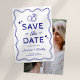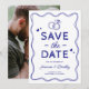 Disfruta del encanto de nuestras caprichosas tarjetas de guardar la fecha de la boda dibujadas a mano. Cada tarjeta es una obra de arte que presenta divertidas ilustraciones de garabatos azules, bordes de cinta, corazones de amor y anillos de boda. Diseñadas sobre un fondo blanco fresco y personalizadas con tu foto, estas tarjetas son más que un anuncio: son el primer capítulo de tu historia de boda.