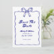 ¡Haga que su invitación boda sea inolvidable con estas tarjetas de fecha de regalo! Estos diseños, llenos de encanto y de un toque retro funky, presentan un lazo de cinta de doodles dibujado a mano y fuentes manuscritas. Elija entre tarjetas impresas premium (listas para enviar por correo) o una plantilla digital.