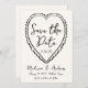 Anuncie a su boda con esta retro y caprichosa tarjeta de fecha, que incluye "Save the Date" en escritura negra manuscrita rodeada por un corazón dibujado a mano sobre un fondo de crema clara. Este diseño único combina elegancia atemporal con encanto lúdico, lo que hace que sea perfecto para las parejas que desean que su invitación boda se destaque. Personalice la tarjeta con sus nombres, fecha de boda y ubicación para crear un recuerdo memorable para sus invitados y fijar el tono de su día especial.