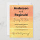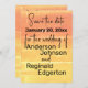 Patrón Mellow feliz de la Melodía Rústica de verano Casual Yellow Peach Save the Date con tarjetas de detalles bodas. Que todos sepan que están listos para celebrar sus nupcias de verano casuales, renovación de votos u otra ocasión con este diseño de patrones casuales de color amarillo anaranjado y melocotón rosado. Este diseño funciona para todas las edades y géneros, y es ideal para primavera y verano, pero se puede usar todo el año. Este diseño funciona para todas las edades y géneros, y es ideal para primavera y verano, pero se puede usar todo el año. La combinación de colores Happy Mellow es amarilla, con un naranja de color rosa y melocotón más vibrante y lleno de vida que la tendencia del melocotón. Es un gran esquema de colores para cuando quieres estar cerca de la tendencia del 2024 color del año, pero no quieres ser exactamente como todos los demás. Este esquema de color se creó mucho antes del color de la invitación del año, por lo que siempre puede decirle a la gente que estaba por delante de la curva, sin importar cuándo se produzca el evento. Diseño creado a partir de una fotografía original tomada por el diseñador de una puesta de sol en San Diego, California, luego texturizado digitalmente para darle ese aspecto casi pintado. Descripción del diseño: el diseño está en cuatro partes. La parte superior es de color rosa melocotón, la segunda parte va del color de melocotón rosado al amarillo medio y las dos secciones inferiores son de color amarillo medio. Las secciones están divididas por líneas gruesas más claras que los colores principales. Todo el diseño tiene puntos que lo hacen parecer angustiado, como si los colores se hubieran aplicado de forma casual e incompleta. El mismo diseño de color subyacente en ambos lados. Descripción del texto: El texto delantero tiene la plantilla de texto Guardar la fecha del boda de en un tipo de letra de script casual sobre la sección de color rosa superior. Debajo de eso, plantillas para los nombres de las dos personas que se casan, en una gran letra redondeada en negrita. Los nombres están a la vista. Debajo de eso, en el mismo tipo de letra más pequeño, una plantilla para la fecha. El texto posterior copia las mismas plantillas de nombre desde el frente y las coloca en la sección superior de color rosa melocotón. Debajo de eso, la fecha en la parte delantera se copia en una versión mucho más grande del mismo tipo de letra del guión en la sección que cambia del color melocotón al amarillo. Debajo de eso, las plantillas en negrita son más pequeñas para el lugar de boda, la ciudad/estado y el sitio web boda. En la parte inferior, una plantilla con letra pequeña para su etiqueta, o cambie el tipo de letra y use su etiqueta, o deje en blanco.