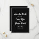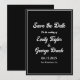Haga una declaración con esta invitación de guardar la fecha de boda atemporal y clásica en negro y blanco. La tipografía blanca en negrita sobre un fondo negro crea un contraste llamativo y una apariencia única. Perfecta para bodas, compromisos y otras ocasiones especiales, esta invitación dejará una impresión duradera. El diseño simple pero elegante seguro se destacará entre el resto.
