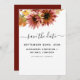 Boda de Primavera con Acuarela de Follaje Exterior Rústico de Girasol Borgoña y Amarillo - Guardar la Fecha de Tarjetas de Invitación Elegantes y Modernas sobre fondo Blanco - incluye tipografía de letra cursiva hermosa y elegante con hojas de Otoño o de Caída botánicas modernas y vegetación para la celebración del día especial de la Boda.
