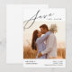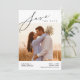 Guarda nuestra fecha. Este guión moderno, la tarjeta de guardar la fecha de la feliz pareja, es perfecto para el anuncio de celebración de tu boda en tu día especial. Esta invitación de guardar la fecha incluye una foto, y puedes modificar fácilmente los detalles del anuncio de guardar la fecha de tu boda. Esta tarjeta también está disponible en versión digital descargable.
