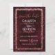 La elegante, glamorosa y moderna tarjeta de aviso de boda es perfecta para el evento contemporáneo y con estilo. Cuenta con un borde de confeti brillante con brillo de rosa dorada falso impreso sobre un fondo de acuarela rojo burgundy artístico. La parte trasera muestra el mismo brillo pero espolvoreado por toda la página con el fondo de acuarela. ¡Este diseño chic, lujoso y único será un éxito con todos tus invitados!