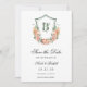Esta hermosa tarjeta de aviso de boda con cresta floral de melocotón con las iniciales de la novia y el novio sería perfecta para su boda. Su redacción es tradicional pero moderna y las fuentes son exquisitas. Las peonías rosadas, rosas, flores silvestres, lirios del valle y vegetación ligera son románticas y elegantes.