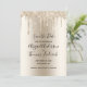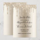 Una tarjeta elegante y de moda, de color champán con destellos que gotean para guardar la fecha. Personaliza todas las secciones de la tarjeta. Ver nuestros productos relacionados en la Colección de Destellos de Champagne.