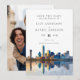 Esta elegante tarjeta de save-the-date para boda con acuarela del horizonte de Dallas se puede personalizar con su información en tipografía moderna y una foto especial en el reverso. Diseñada por Thisisnotme©