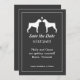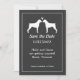 Boda de amante de boxer Save the Date. Invitación de boda gris y blanca con siluetas de perro boxer.