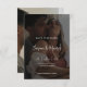 Capture la esencia de su historia de amor con nuestras tarjetas de aviso de boda con superposición de foto moderna y elegante. Estas tarjetas diseñadas con belleza presentan un diseño minimalista y elegante, donde su foto de compromiso favorita toma el centro de la escena. La tipografía sofisticada, superpuesta en su foto, asegura que sus nombres y fecha de boda sean los puntos focales perfectos, agregando un toque de clase y elegancia moderna.