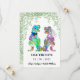 Deleite a sus invitados con esta divertida boda con tema de dinosaurios, novios T-Rex con follaje del bosque, guarden la fecha. Fácil de personalizar con los nombres de los novios y la fecha de la boda. Ilustraciones coloridas de Tyrannosaurus Rex novios con tipografía moderna. Arte original único de la artista Catherine Sweetman