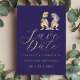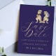 Haz que el anuncio de tu boda sea verdaderamente inolvidable con esta caprichosa tarjeta de "Guarda la fecha" con tema de dinosaurios, que presenta a una adorable novia y novio T-Rex.
