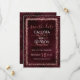 La elegante, glamorosa y moderna tarjeta de aviso de boda es perfecta para el evento contemporáneo y elegante. Cuenta con un borde de confeti brillante con brillo de rosa dorado impreso falso sobre un fondo de acuarela rojo burgundy artístico. La parte trasera muestra el mismo brillo pero espolvoreado por toda la página con el fondo de acuarela. Este diseño chic, lujoso y único será un éxito con todos sus invitados.