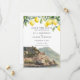 Esta elegante invitación de boda para guardar la fecha, con limones acuarela y una escena de la costa de Amalfi en Italia, se puede personalizar con su información en tipografía chic. Diseñado por Thisisnotme©