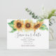 Tarjeta de anuncio de Boda de Acuarela Botánica Rústica de Girasoles para guardar la fecha.